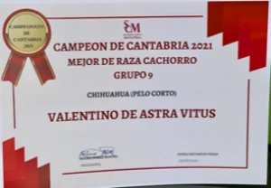 | Concurso Nacional Canino de Escalante Ágata de Diamantes Cántabros Excelente 1º en Jovenes |